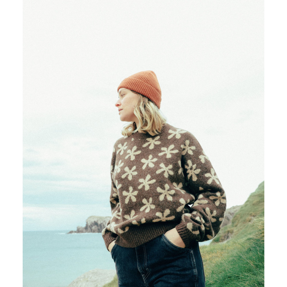 Bonnet uni à revers avec étiquette contrastée, en maille douce et extensible.