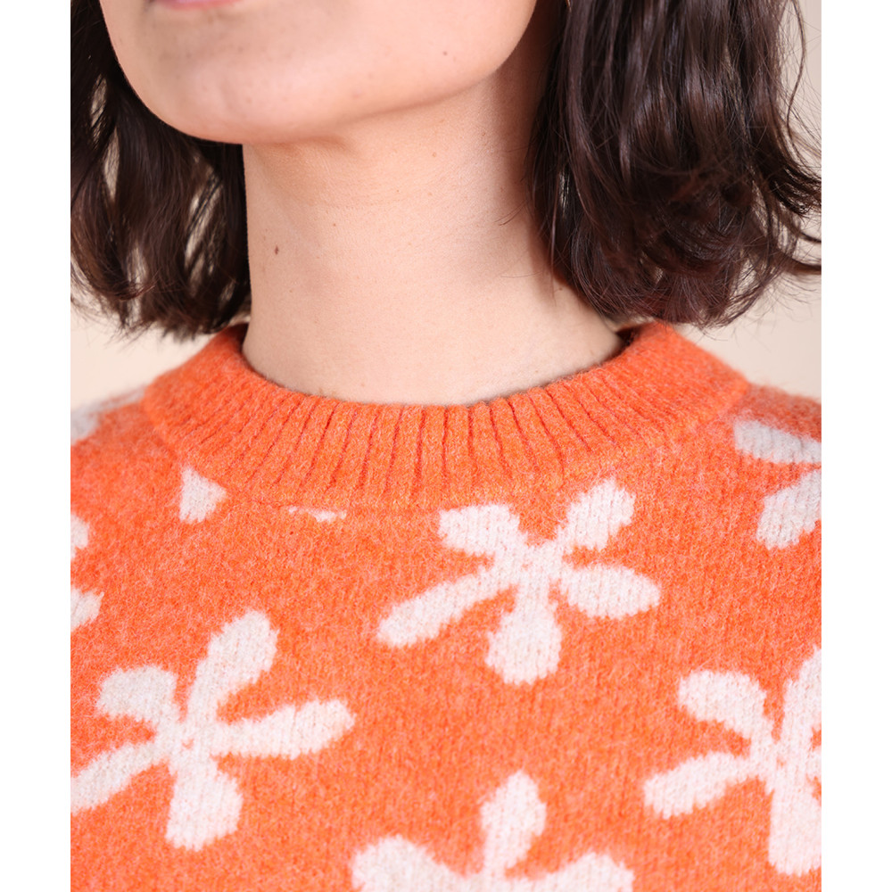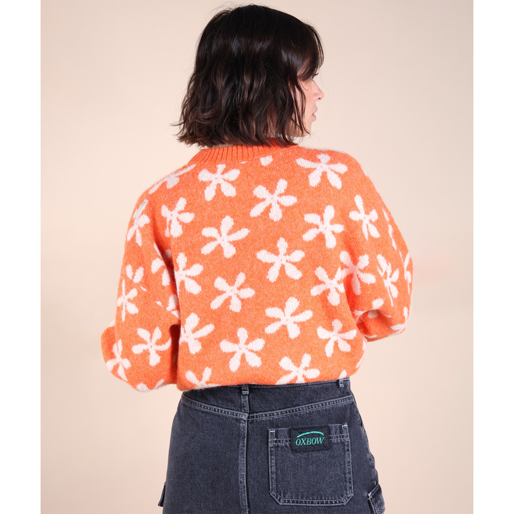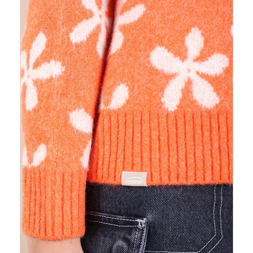 Pull à manches longues en maille jacquard douce et chaude, avec une coupe confort et encolure ronde.