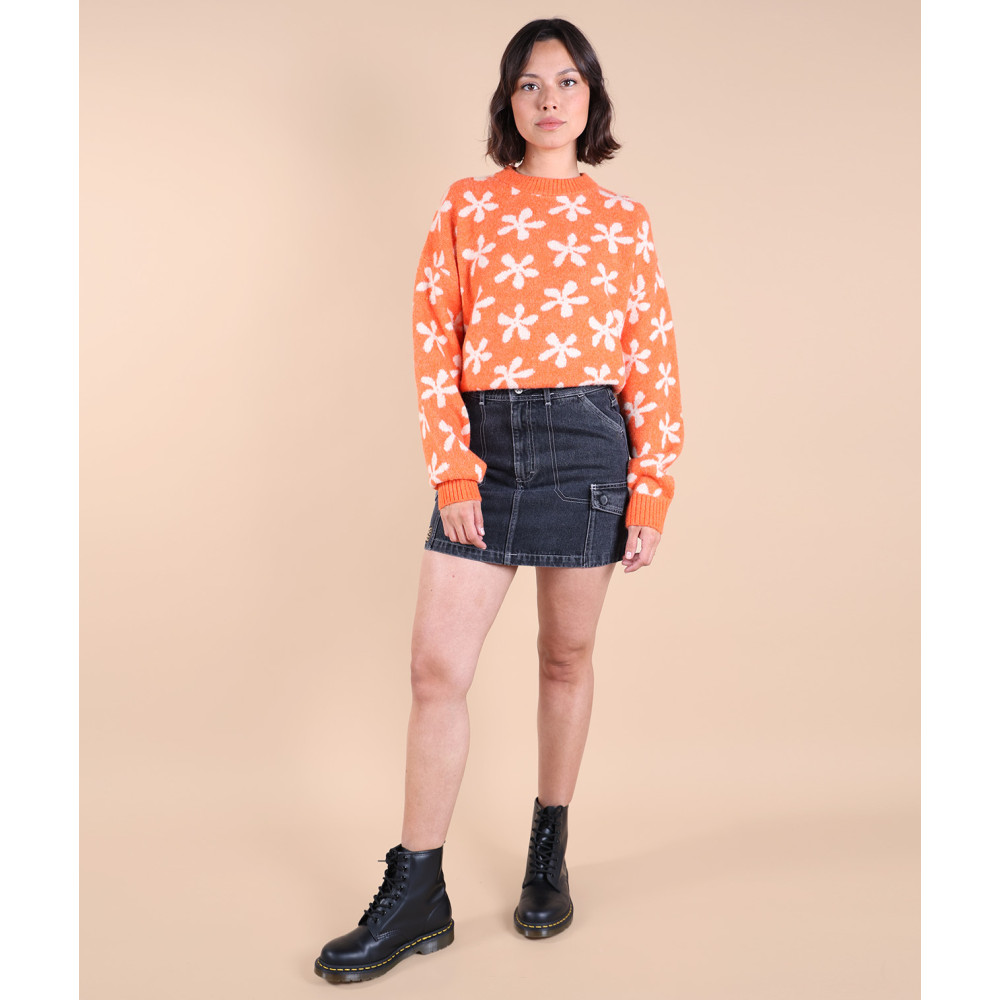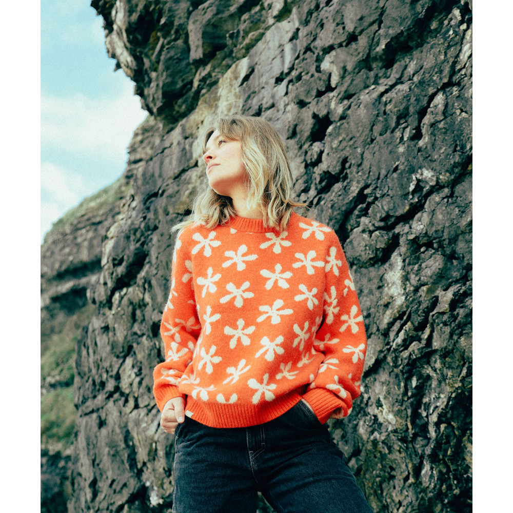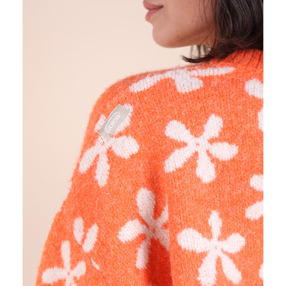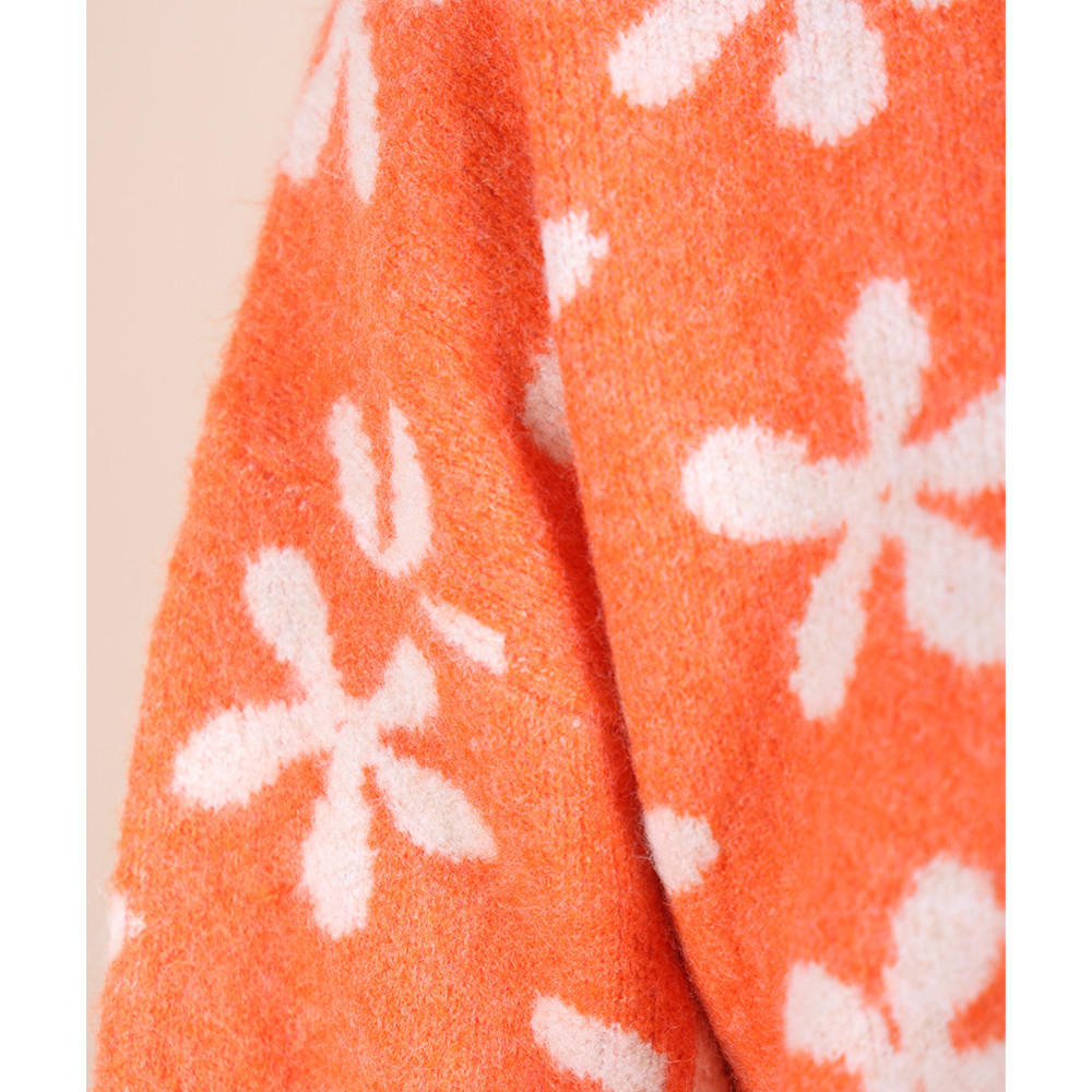 Pull à manches longues en maille jacquard douce et chaude, avec une coupe confort et encolure ronde.