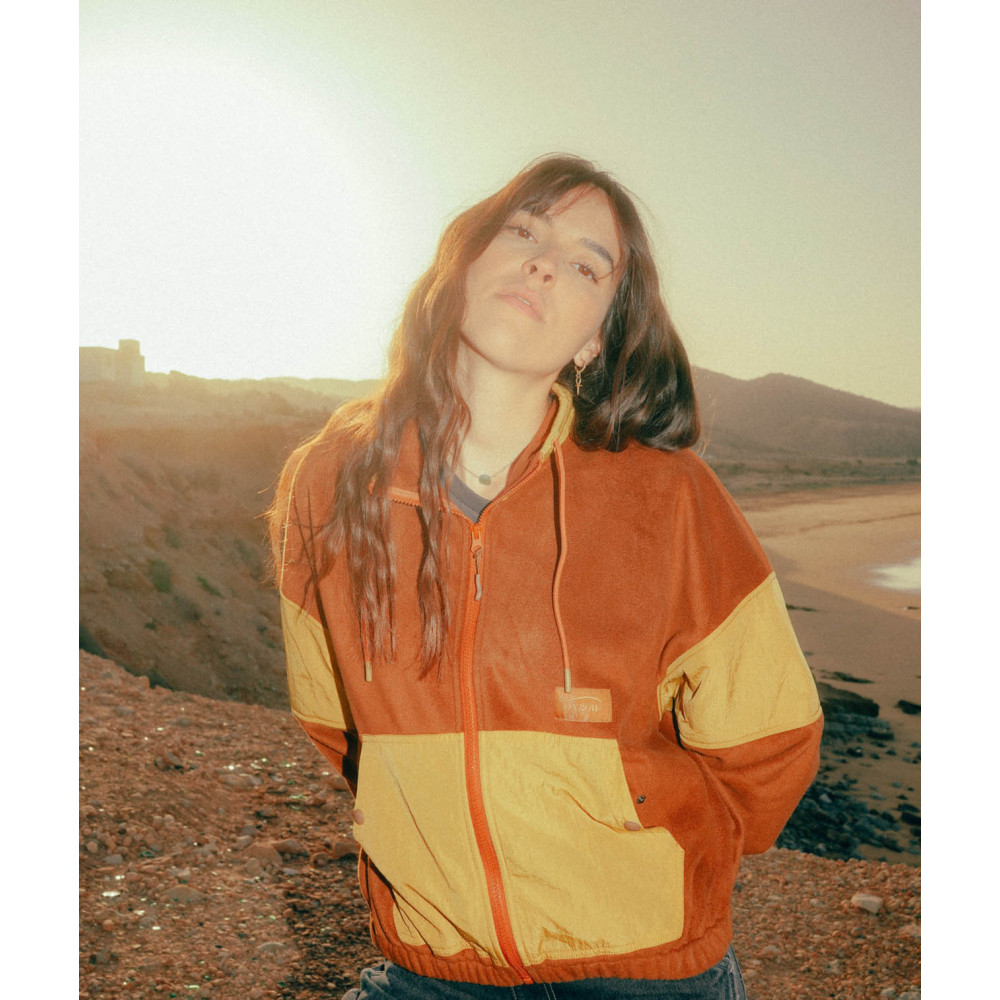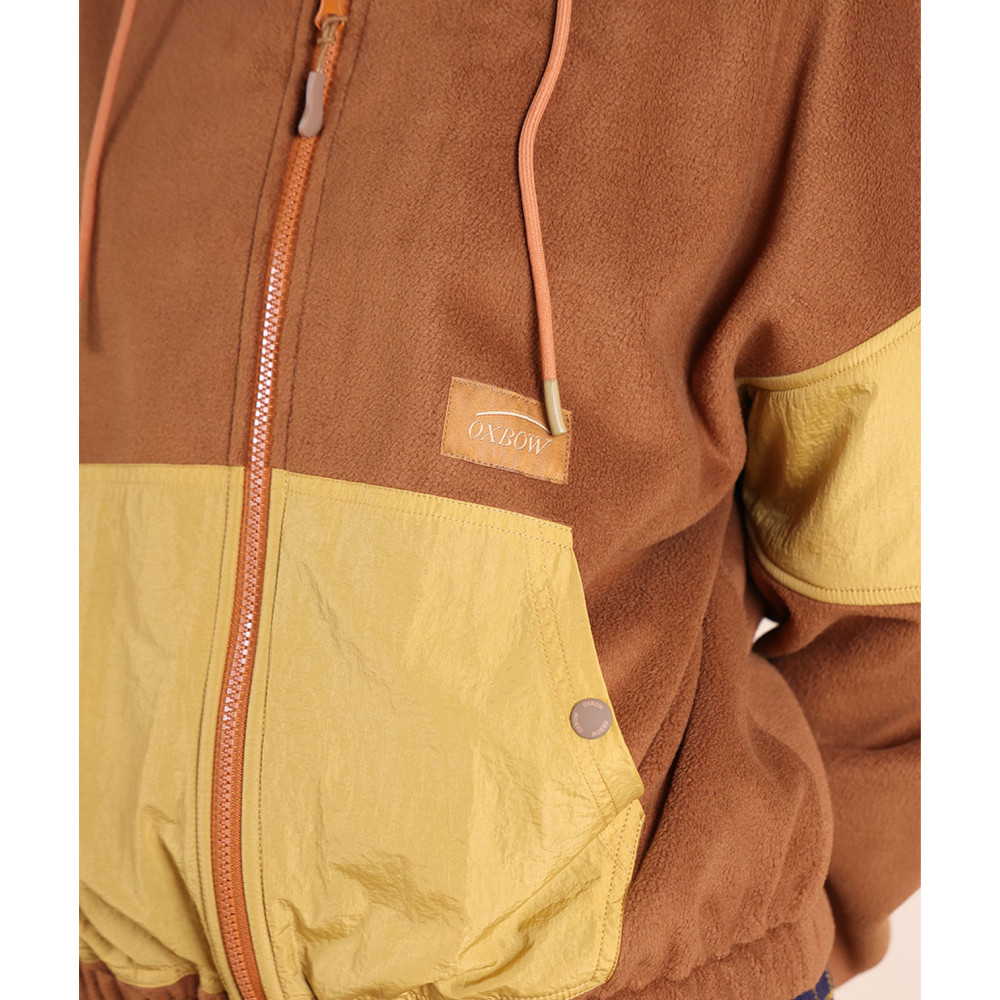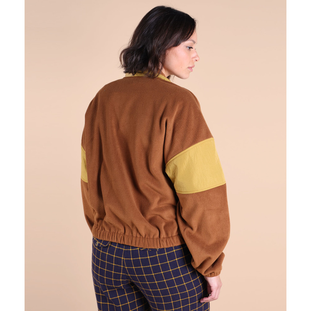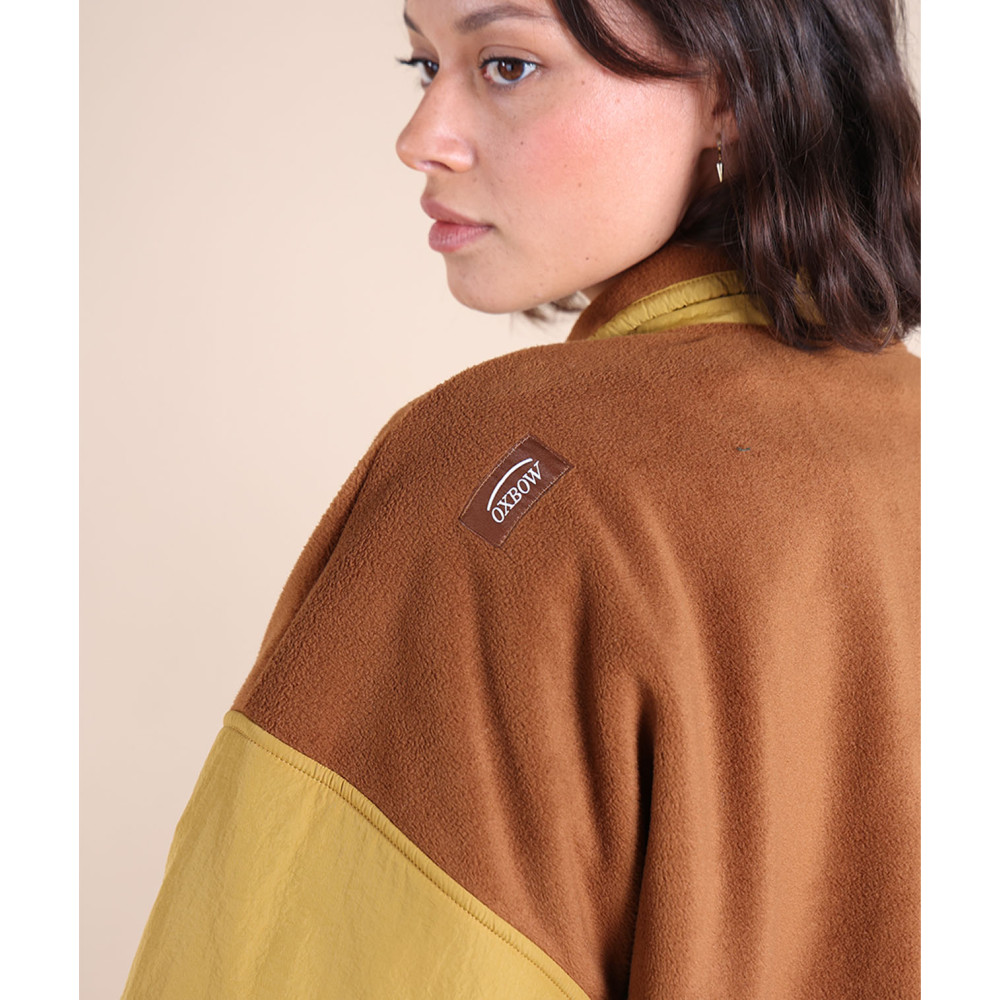 Polaire zippée courte à coupe boxy avec inserts en nylon contrasté, poche kangourou et col montant.
