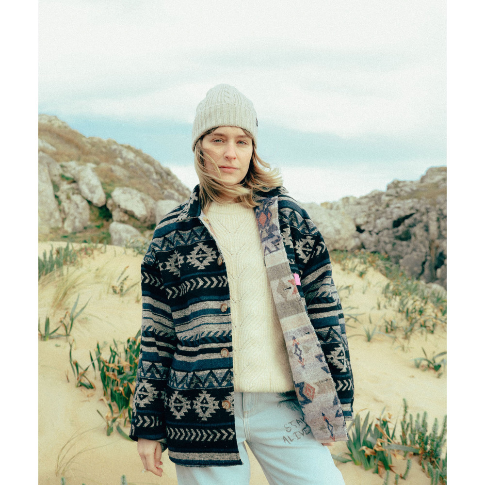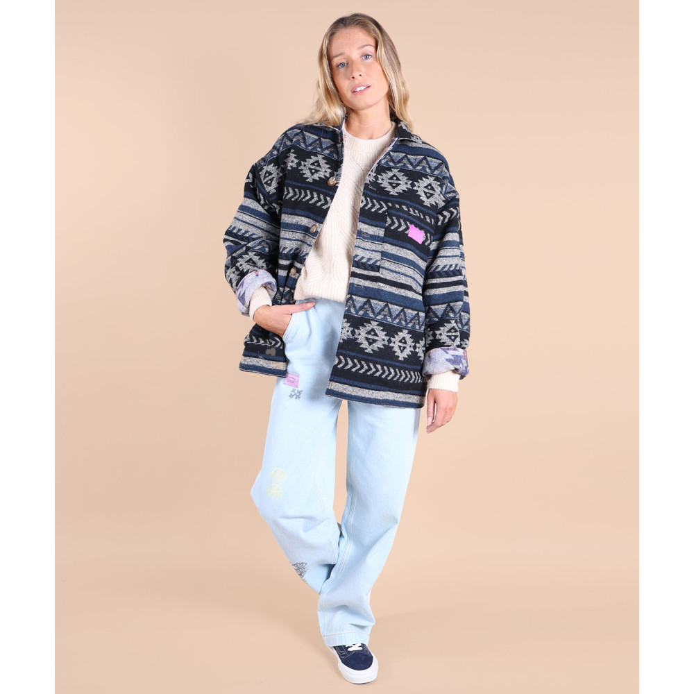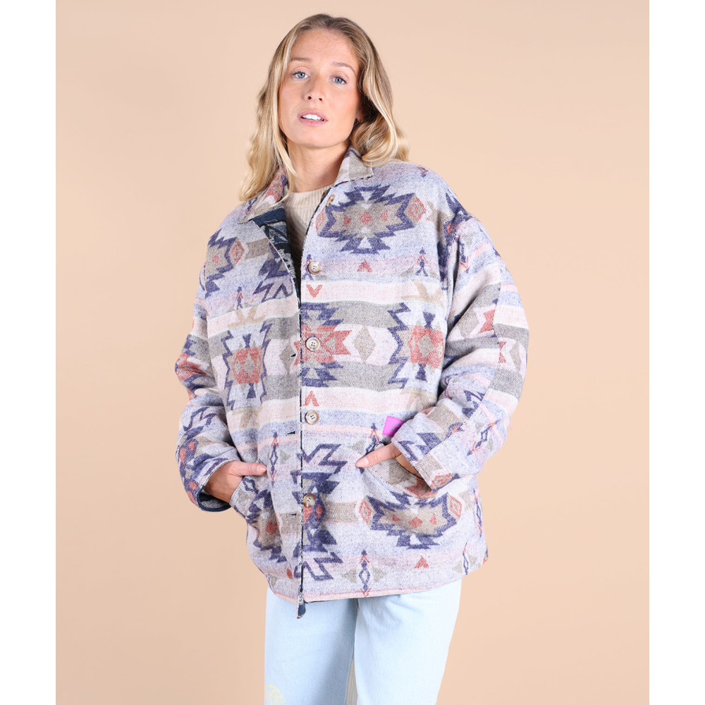 Surchemise vintage réversible avec jacquard artwork, avec des poches sur la face A et une poche poitrine sur la face B, fabriquée en polyester.