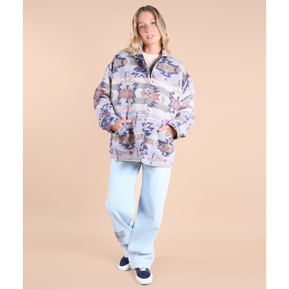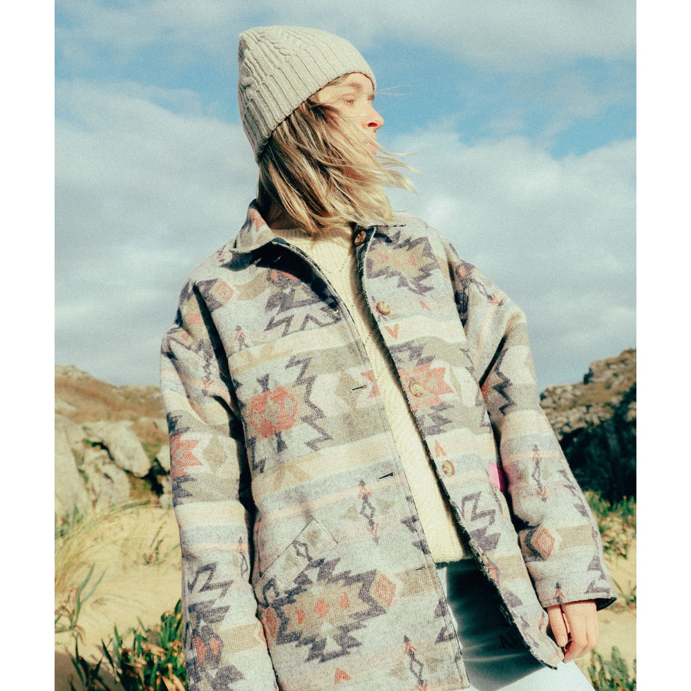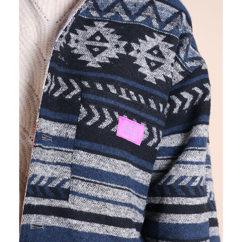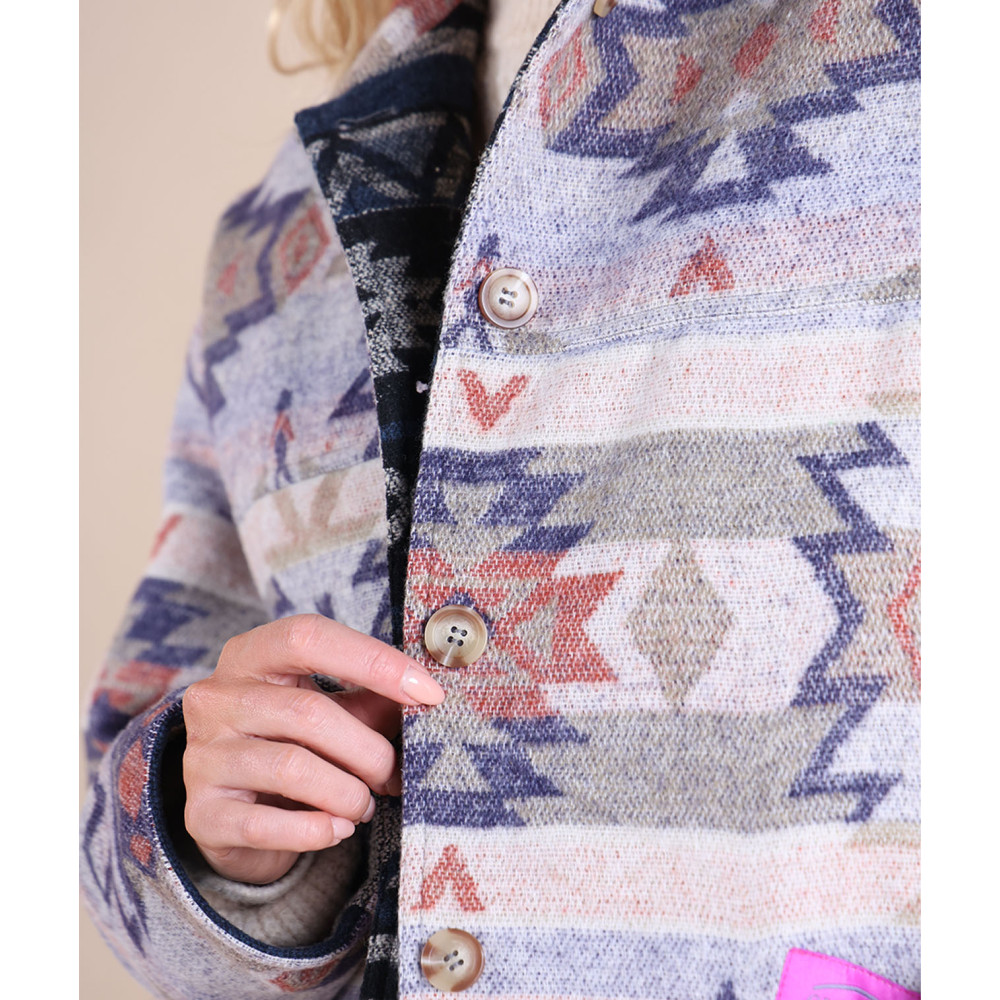 Surchemise vintage réversible avec jacquard artwork, avec des poches sur la face A et une poche poitrine sur la face B, fabriquée en polyester.