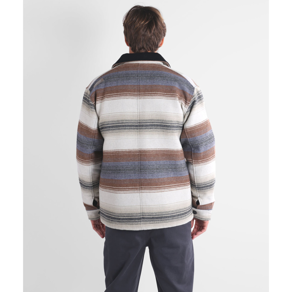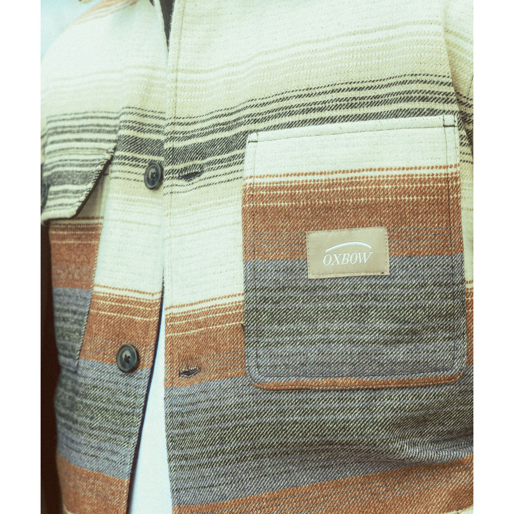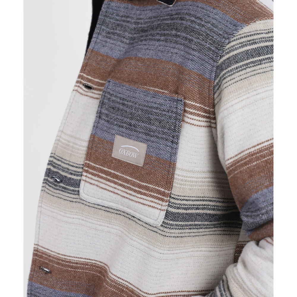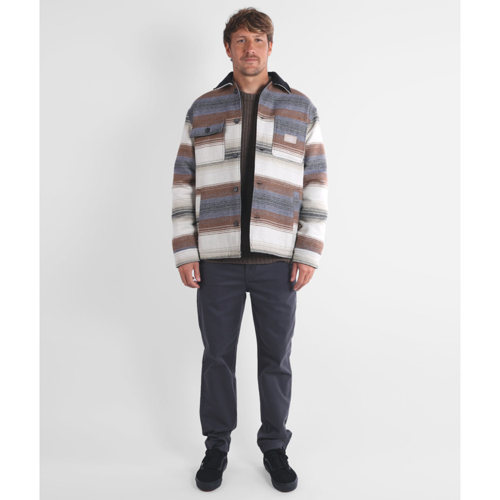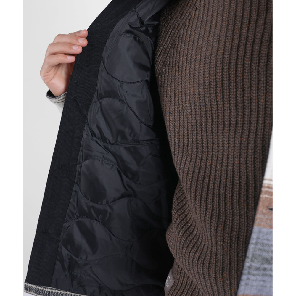 Veste en flanelle matelassée, intérieur contrasté, col en velours, boutons visibles et poches poitrine plaquées.