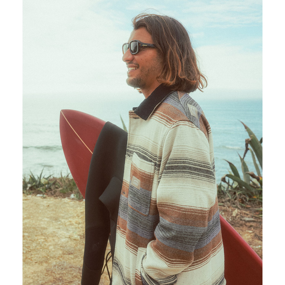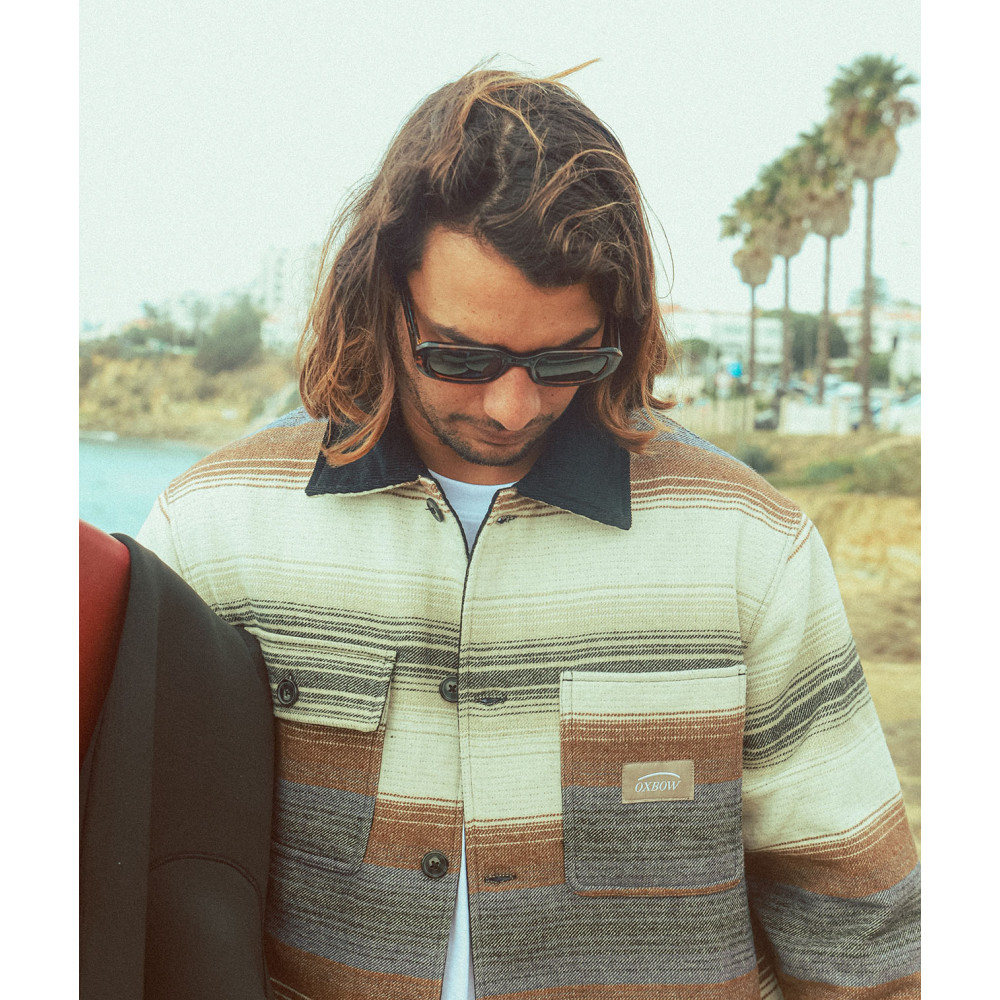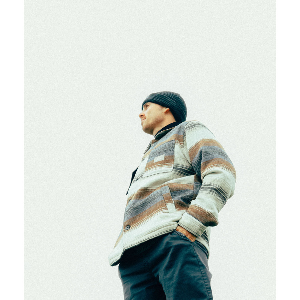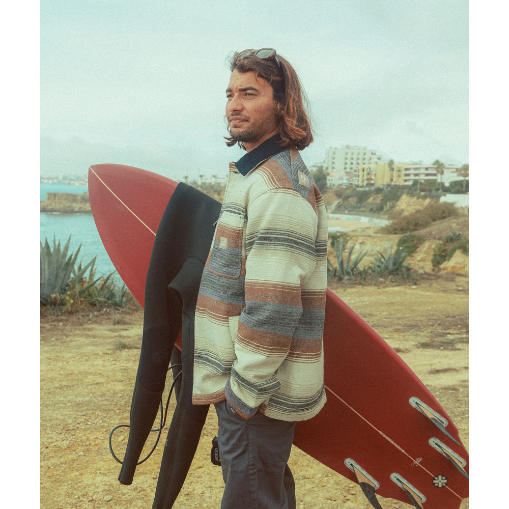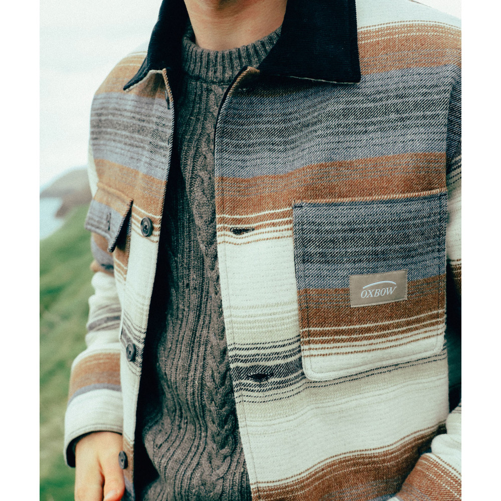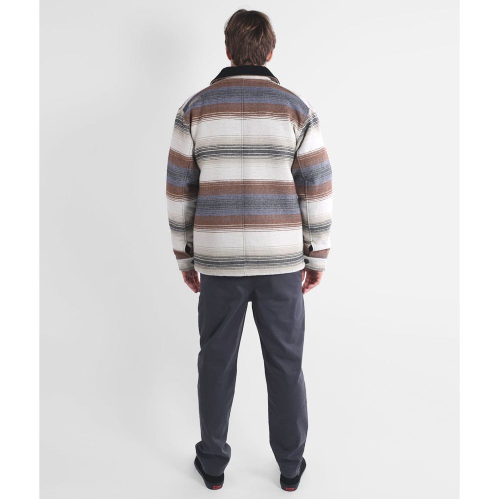 Veste en flanelle matelassée, intérieur contrasté, col en velours, boutons visibles et poches poitrine plaquées.