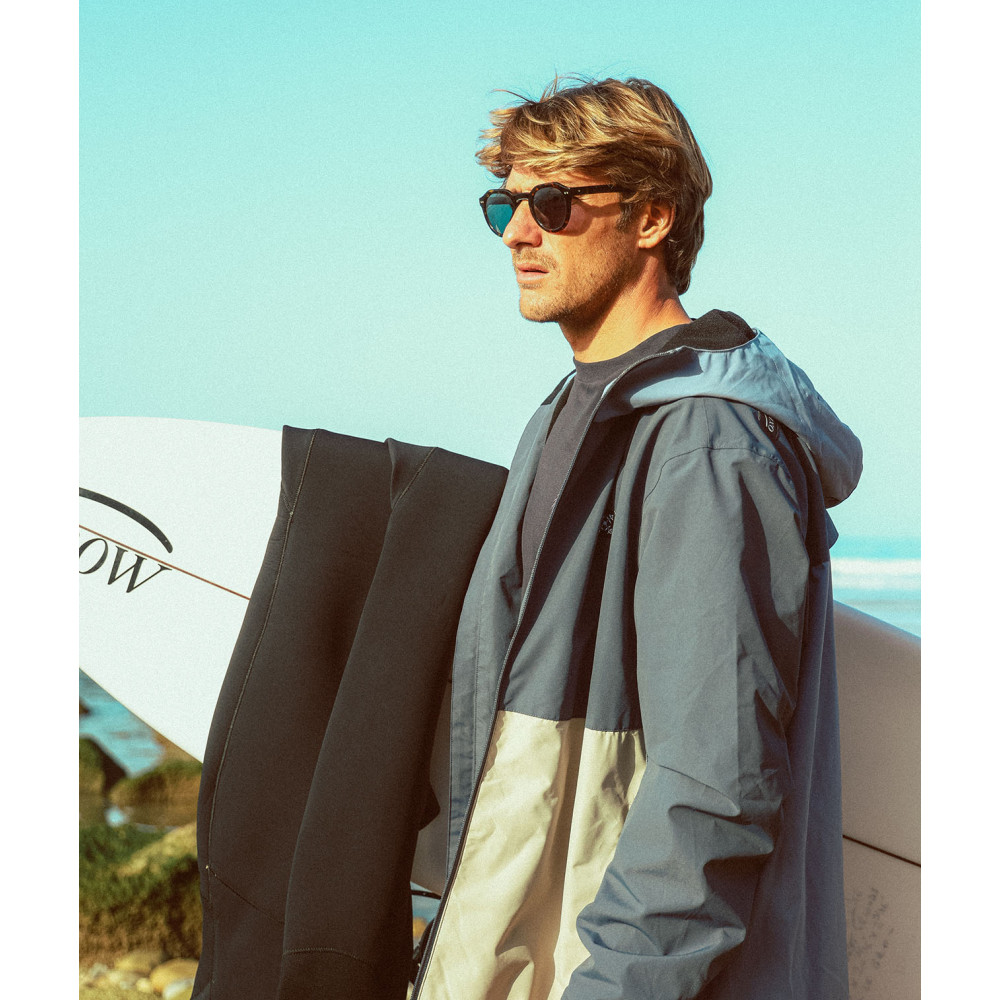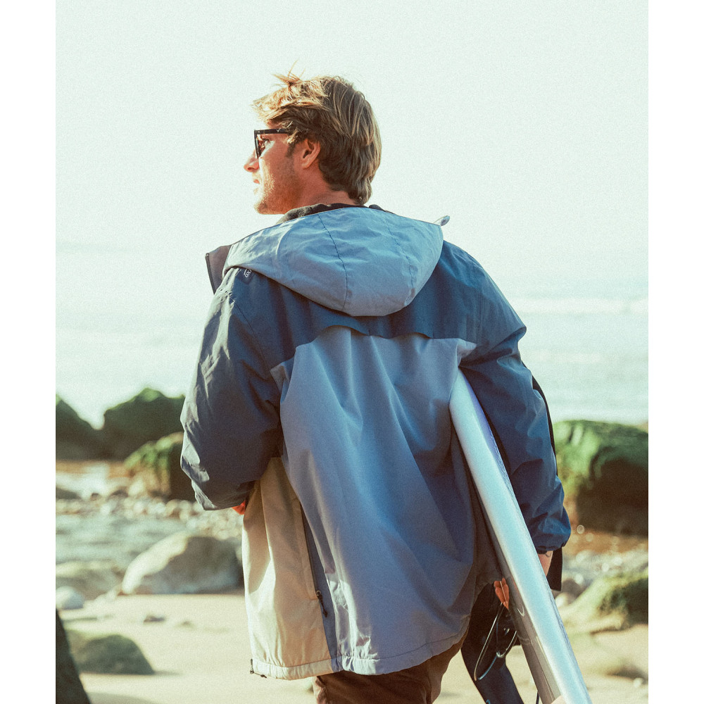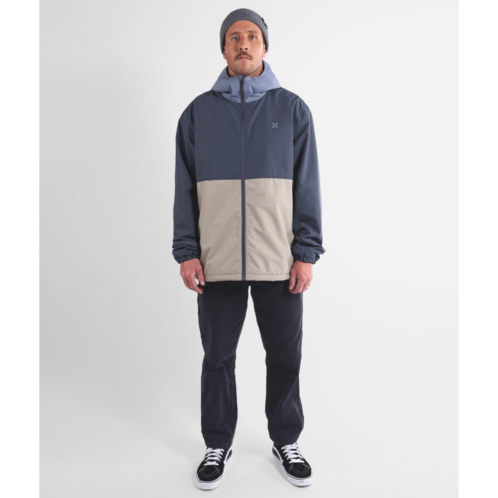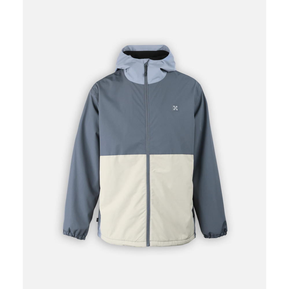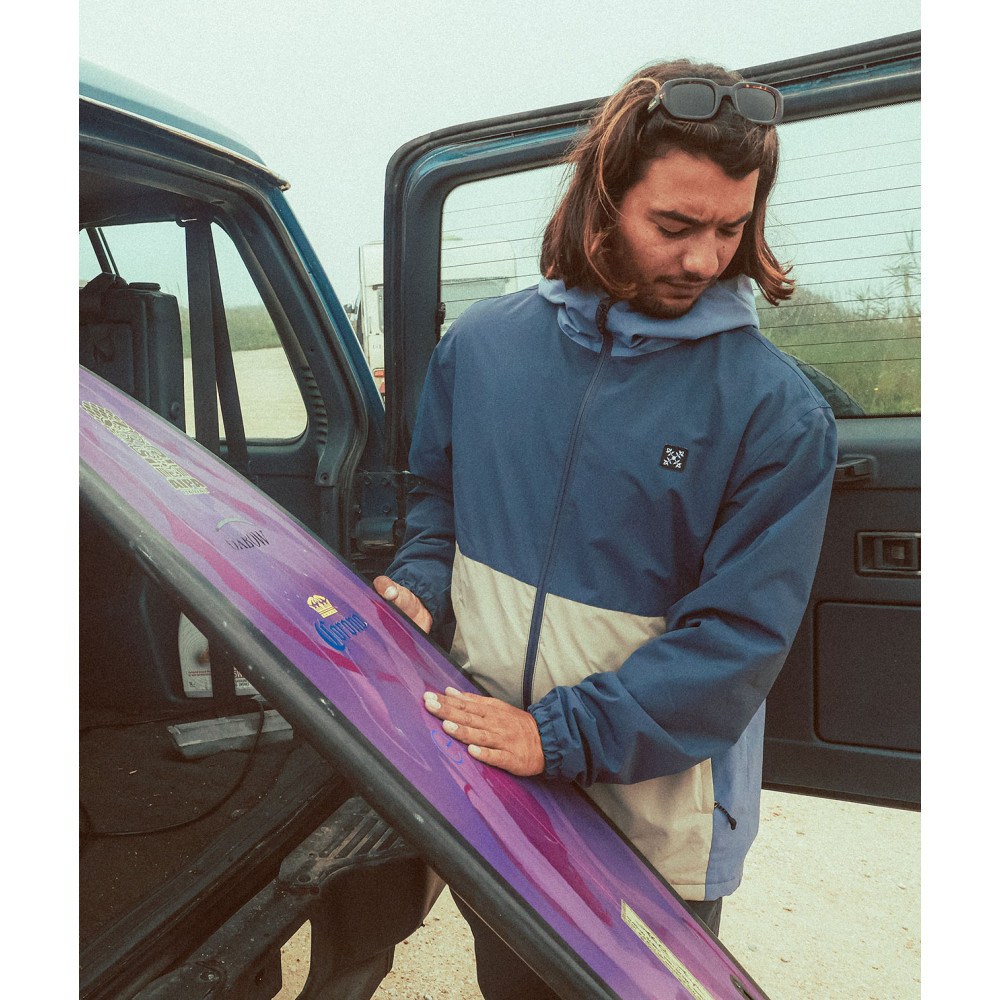 Veste avec une matière laminée 5k/5k, doublure polaire et capuche ajustable. Elle offre des poches zippées et un design colorblock moderne.