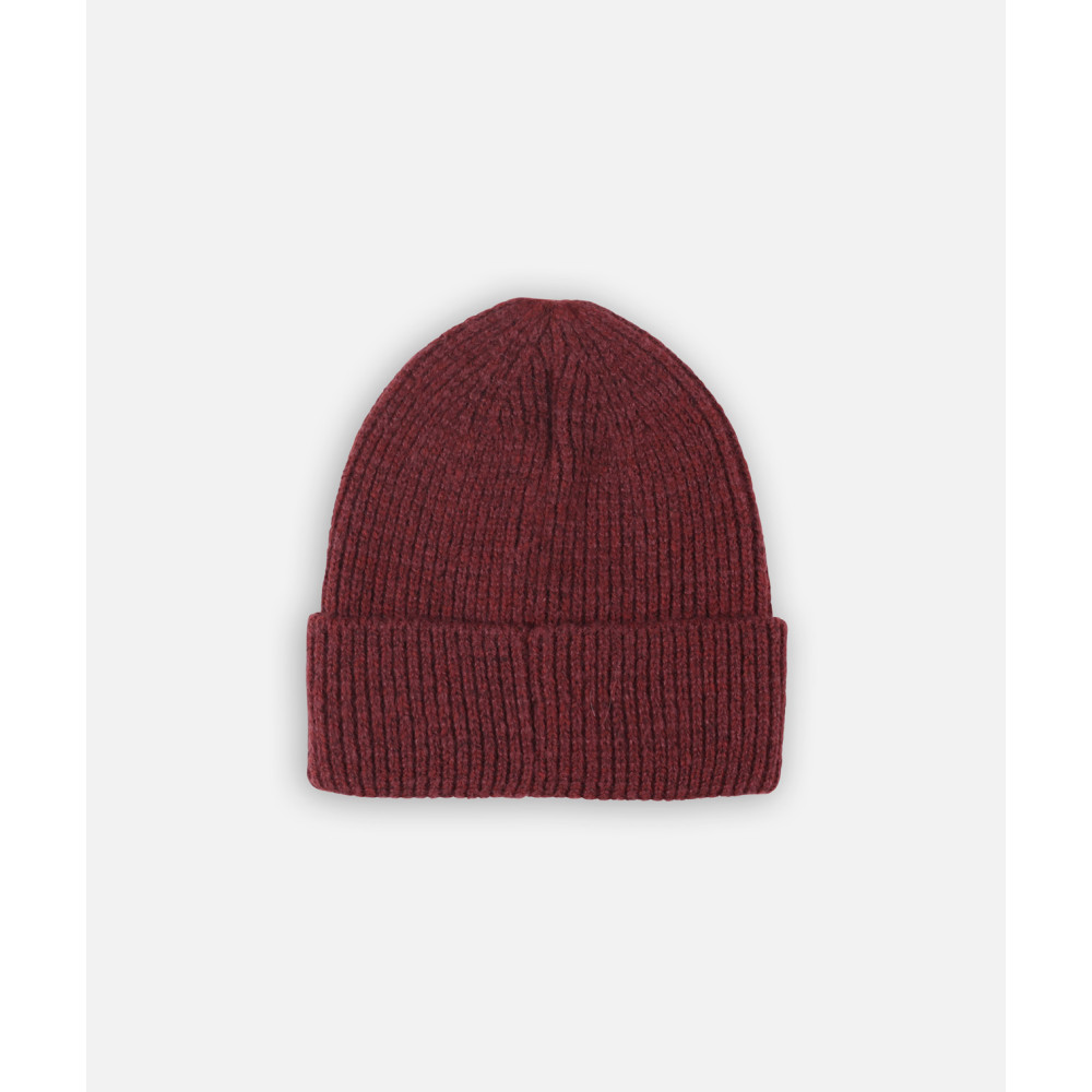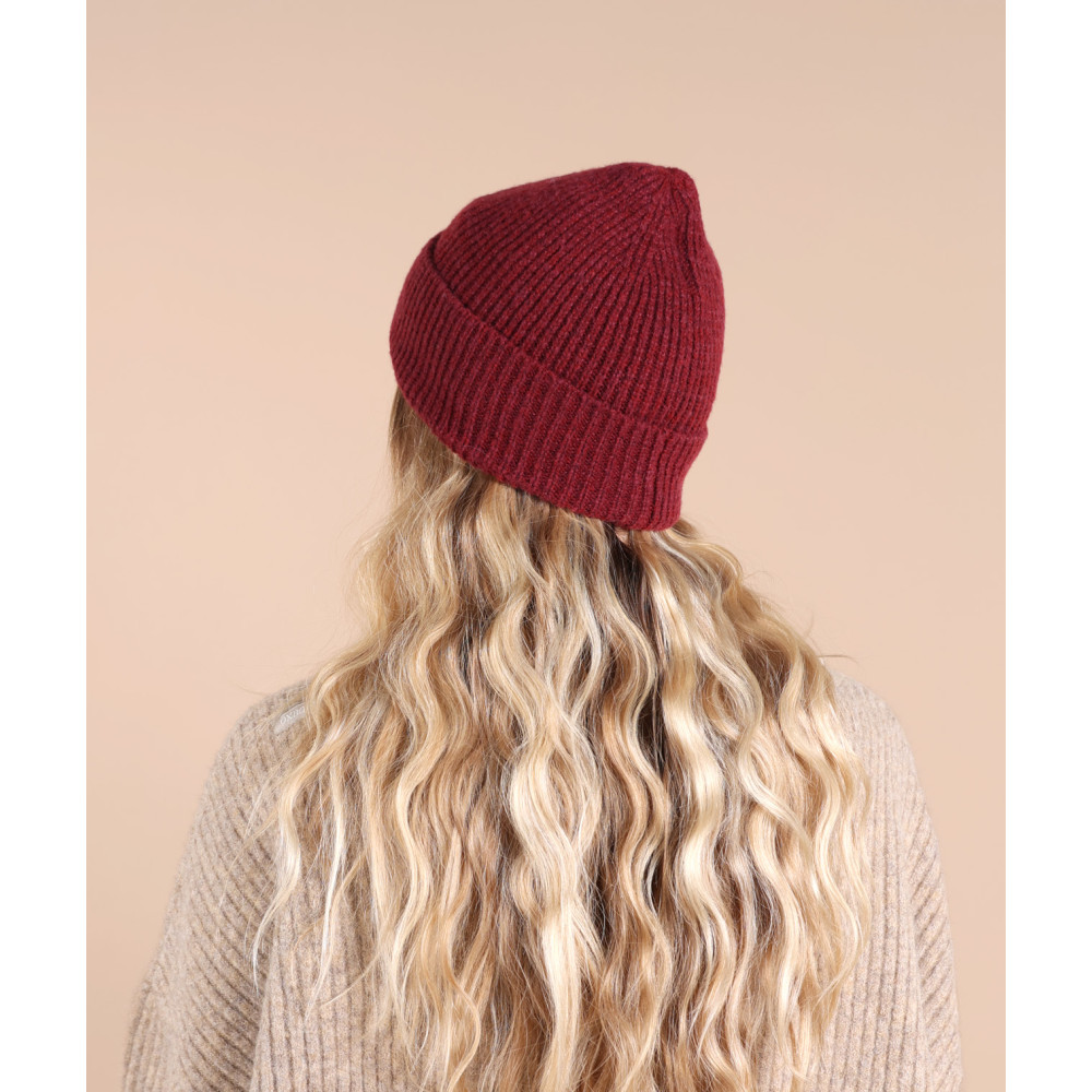 Bonnet uni à revers avec étiquette contrastée, en maille douce et extensible.