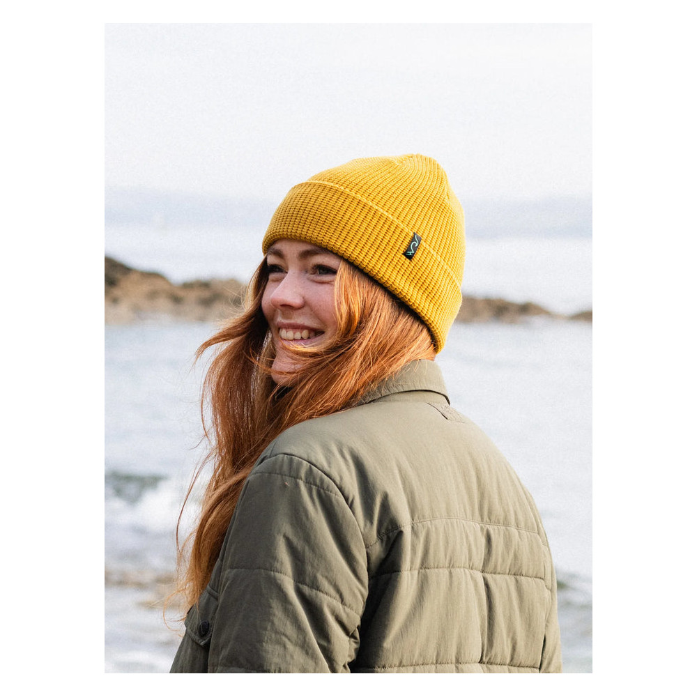 Un bonnet à la coupe basse, en maille gaufrée, orné d'une discrète étiquette tissée Bleubird sur l'ourlet. Conçu pour les aventures quotidiennes en plein air, il offre chaleur et confort en toute légèreté, quel que soit votre itinéraire.