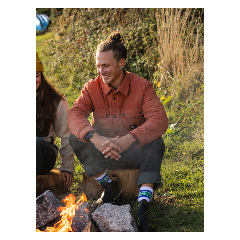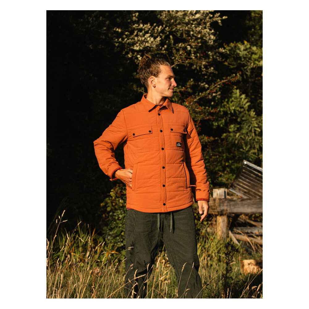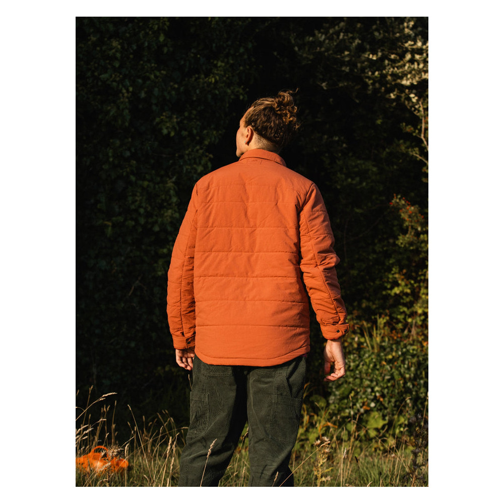 La veste Hauler allie le confort d'une surchemise à la chaleur d'une veste légère. Avec sa coupe décontractée et unisexe, elle est confectionnée en polyester 100 % recyclé et dotée d'un rembourrage synthétique fin pour une isolation optimale au quotidien, sans volume superposable – idéale à porter seule ou en superposition.
